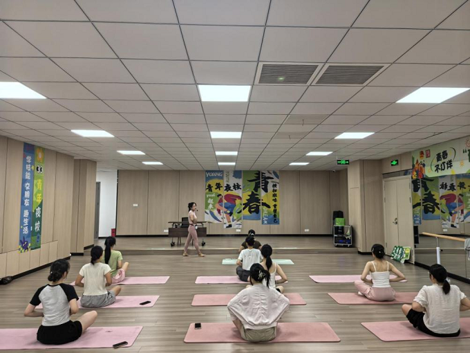 “吸气延展,呼气深入……”伴随着舒缓的音乐,在老师轻柔引导中,耐心地纠正每位学员的姿势,学员们跟随指令,在一人一垫的空间里,专注地完成每一个瑜伽动作。在一呼一吸之间,逐渐进入瑜伽所带来的宁静与愉悦之境,真切体验到了这项运动的独特魅力。