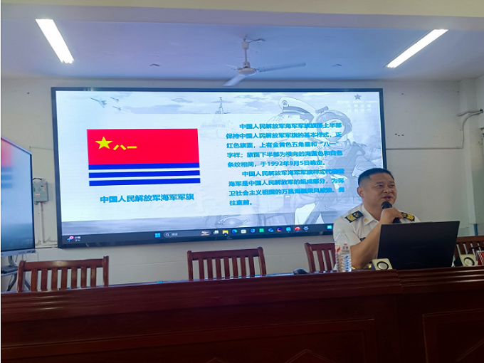 宣讲中,邵家胜同志身着整洁的军装,胸佩灿烂的奖章,以铿锵有力的声音、饱含深情的讲述,带领同学们回溯人民军队波澜壮阔的发展历程。从硝烟弥漫的革命岁月,到和平年代的守护征程,邵家胜同志尤其聚焦海军的成长蜕变——从最初“一穷二白”的艰难起步,到逐步拥有自主研发的先进装备;从近海防御的探索前行,到驶向深蓝、守护万里海疆的坚定步伐,一个个鲜活的历史片段、一组组振奋人心的发展成就,让在场同学们深刻感受到人民海军“从无到有、从弱到强、从浅海到深蓝”的非凡跨越。台下同学们听得聚精会神,眼中满是崇敬与向往,不时响起阵阵热烈掌声。